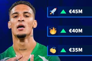 32场11球9助!德转预热安东尼身价:最低涨至3200万欧 最高4500万